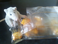 ねずみ カレーおかきを食べる。