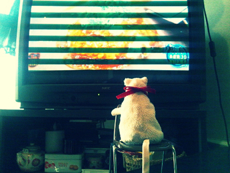 ねずみさん、テレビを見る。