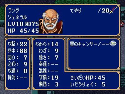 | 備考 | やられ役と思いきや、かなり高いステを持っています。 武器が悪かったのが可哀想です。てやり。 せめてグラディウスでも持ってたら…。 |