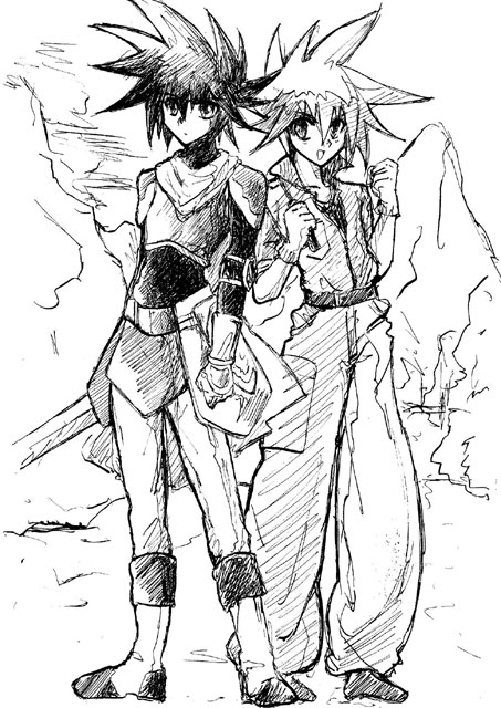 髪黒いほうが正当なファンタジー世界の住人で国を守る剣士として教育されてきたのね。んで今回やっと認められて旅にでる。