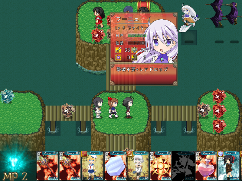 | このゲームでは様々なコンボをプレイヤーの皆様が自由に考案することができます。 (例1) マイプリを少女だけでかためて、 少女全体を強化するソーサリーを使えば 場にいる仲間全員を一気に強化できます。 (例2) 強い仲間は多くの消費MPが必要です。 そこで、マイプリを召喚せずに、手札を捨てる効果が発生した時に、そのマイプリをゴミ箱に捨てます。 そして蘇生魔法でゴミ箱のマイプリを直接、場に生き返らせると、手札から使ったわけじゃないのでMPを踏み倒せます。 (例3) シーフは移動力が高いのですが、戦闘力が低いです。 アーマーは戦闘力が高いのですが、移動力が低いです。 この両者に位置を交換する装備をつければ、互いの長所を活かしあった強力なコンビネーションが組めるでしょう。 |