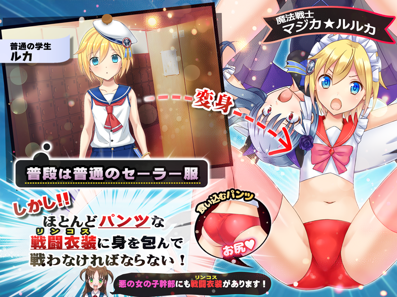 主人公のルカ(セーラー服)は魔法戦士に変身して
